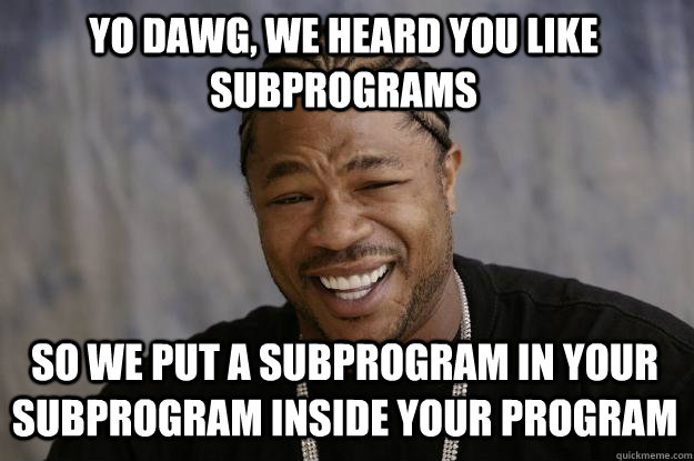 Yo dawg, we heard you like subprograms so we put a subprogram in your subprogram inside your program