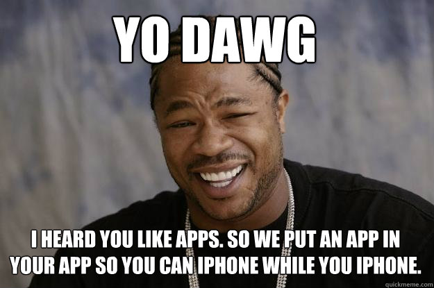 Yo dawg i heard you like apps. so we put an app in your app so you can iphone while you iphone.