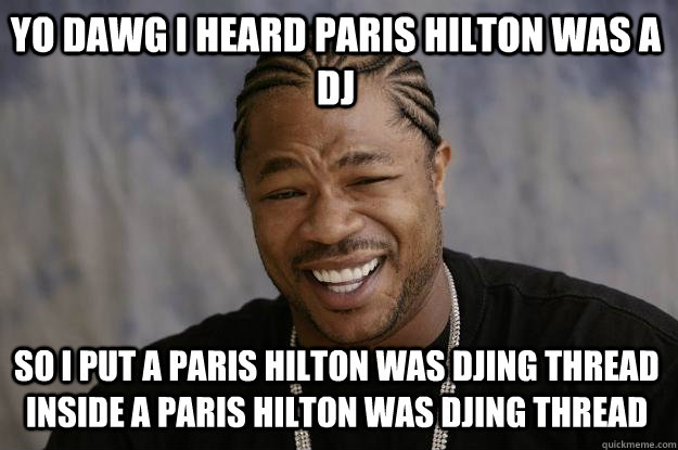 YO DAWG I HEARD PARIS HILTON WAS A DJ SO I PUT A PARIS HILTON WAS DJING THREAD INSIDE A PARIS HILTON WAS DJING THREAD