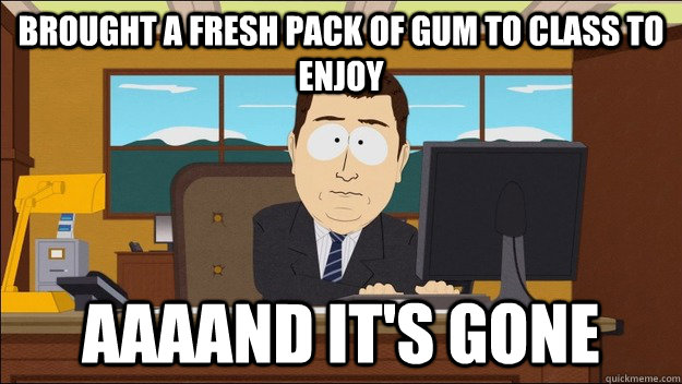 Brought a fresh pack of gum to class to enjoy AAAAND It's gone
