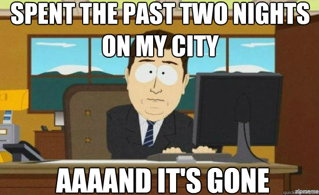 Spent The past two nights on my city AAAAND it's gone