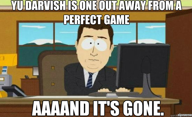 Yu Darvish is one out away from a perfect game AAAAND IT'S gone.