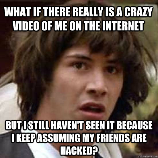 what if there really is a crazy video of me on the internet but i still haven't seen it because i keep assuming my friends are hacked?