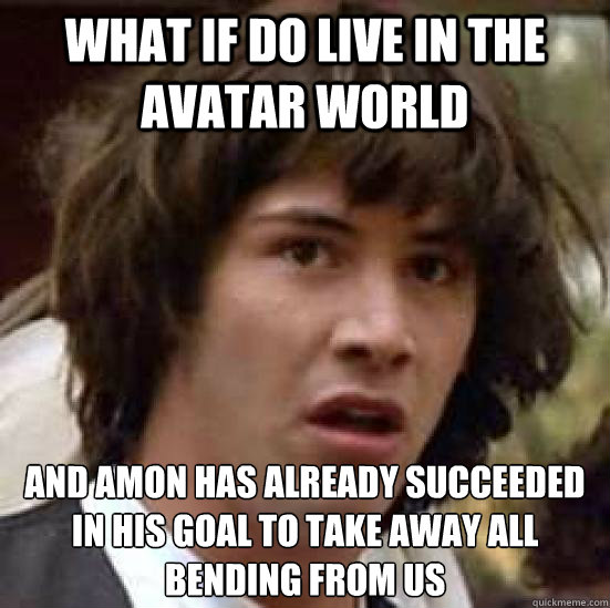 What if do live in the Avatar world and Amon has already succeeded in his goal to take away all bending from us