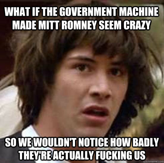 what if The government machine made mitt romney seem crazy So we wouldn't notice how badly they're actually fucking us