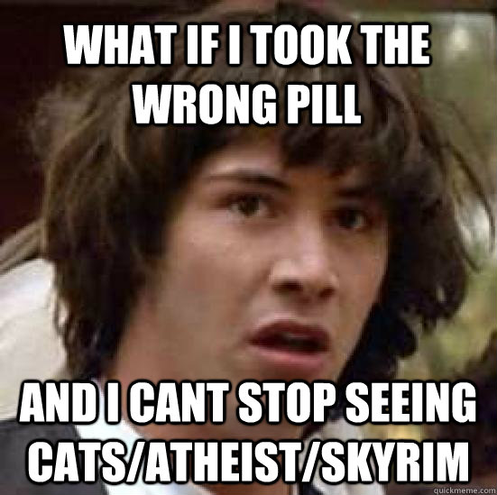 What if i took the wrong pill and i cant stop seeing cats/atheist/skyrim