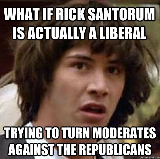 What if Rick Santorum is actually a liberal Trying to turn moderates against the republicans