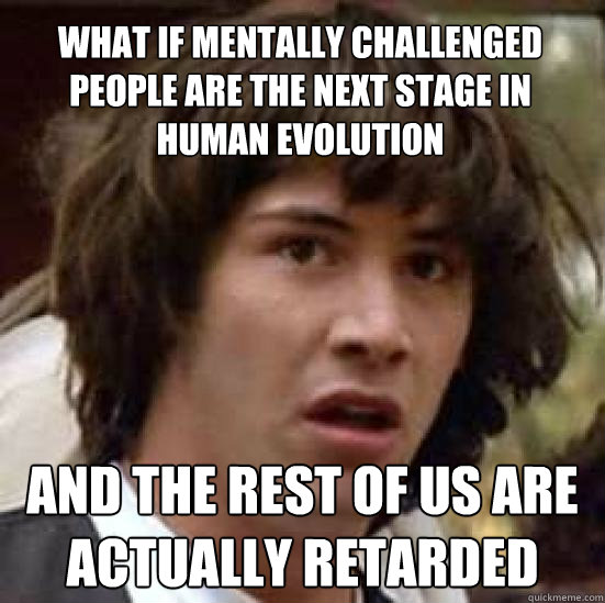 What if mentally challenged people are the next stage in human evolution and the rest of us are actually retarded