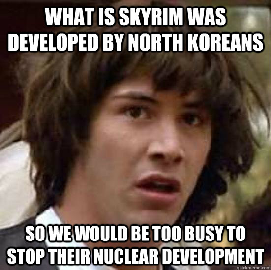 what is skyrim was developed by north Koreans so we would be too busy to stop their nuclear development
