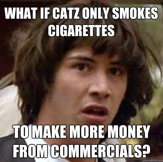 WHAT IF CATZ ONLY SMOKES CIGARETTES TO MAKE MORE MONEY FROM commercials?