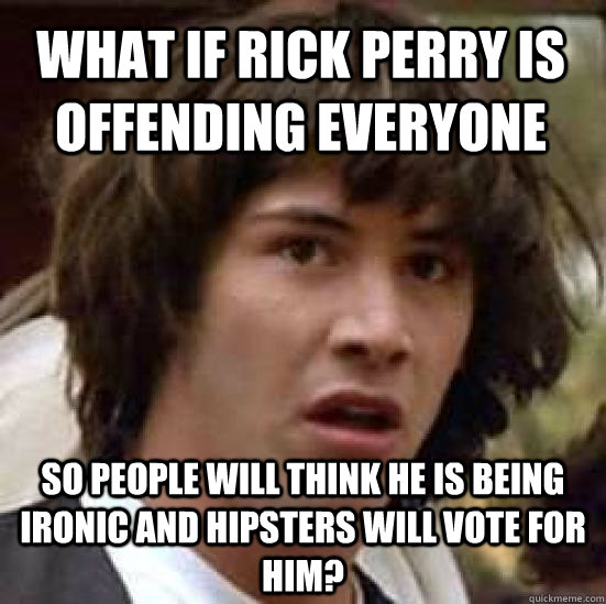 What if Rick Perry is offending everyone So people will think he is being ironic and hipsters will vote for him?