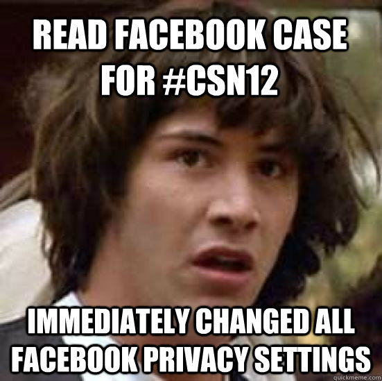 read facebook case for #csn12 immediately changed all facebook privacy settings