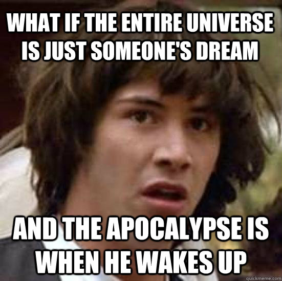 What if the entire universe is just someone's dream and the apocalypse is when he wakes up