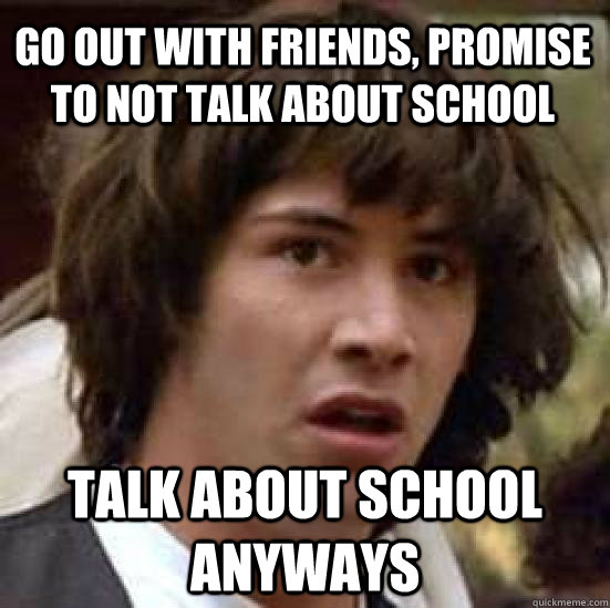 Go out with friends, promise to not talk about school talk about school anyways