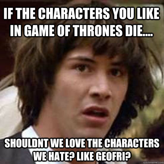 If the characters you like in Game of Thrones die.... shouldnt we love the characters we hate? like Geofri?