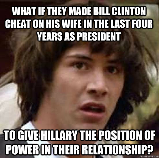 what if they made bill clinton cheat on his wife in the last four years as president to give hillary the position of power in their relationship?