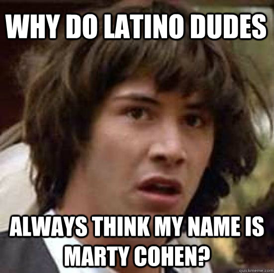 Why do latino dudes always think my name is marty cohen?