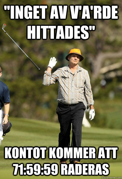 "Inget av v'a'rde hittades" Kontot kommer att 71:59:59 raderas