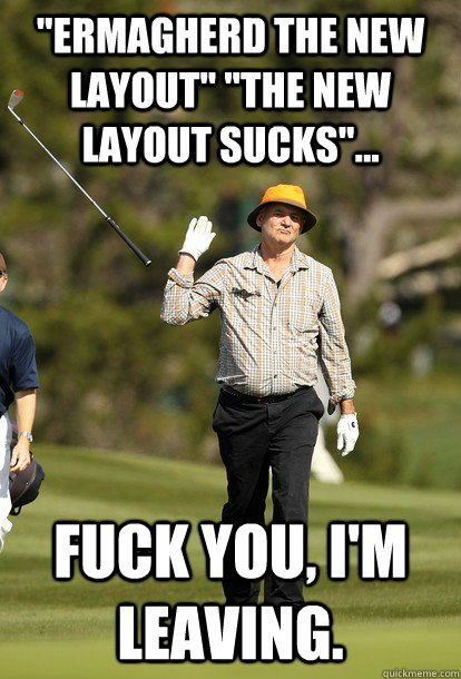 "Ermagherd the new layout" "The new layout sucks"... Fuck you, I'm leaving.