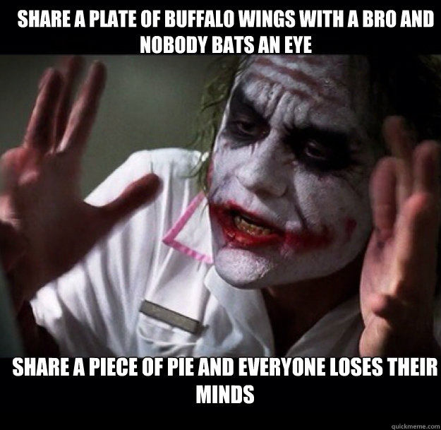 share a plate of buffalo wings with a bro and nobody bats an eye share a piece of pie and everyone loses their minds