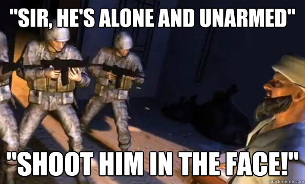 "Sir, he's alone and unarmed" ''SHOOT HIM IN THE FACE!''