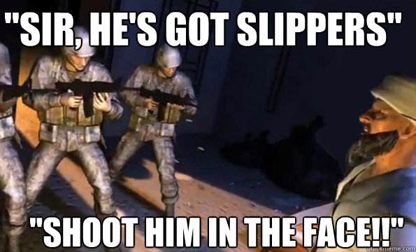 "Sir, he's got slippers'' "SHOOT HIM IN THE FACE!!"