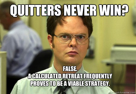 A calculated retreat frequently proves to be a viable strategy. - Quitters Never win? FALSE.
