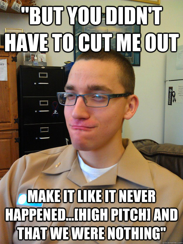 "But you didn't have to cut me out Make it like it never happened...[high pitch] and that we were nothing"