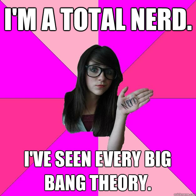 I'm a total nerd. I've seen every Big Bang Theory. - I'm a total nerd. I've seen every Big Bang Theory.  Idiot Nerd Girl