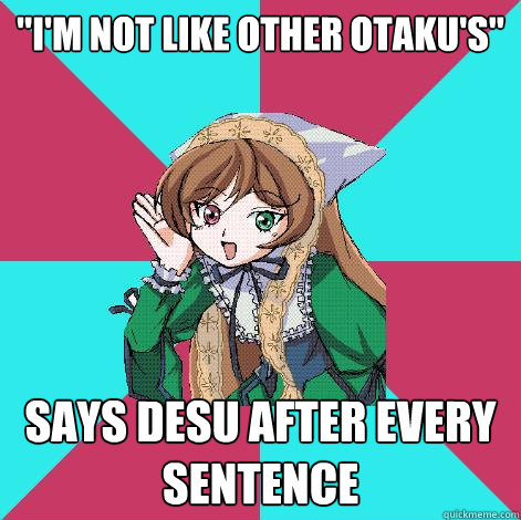 "I'm not like other otaku's" Says desu after every sentence