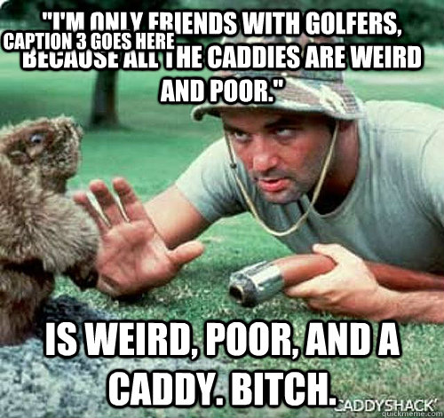 "I'm only friends with golfers, because all the caddies are weird and poor." is weird, poor, AND a caddy. Bitch. Caption 3 goes here