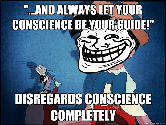 "...And always let your conscience be your guide!" disregards conscience completely