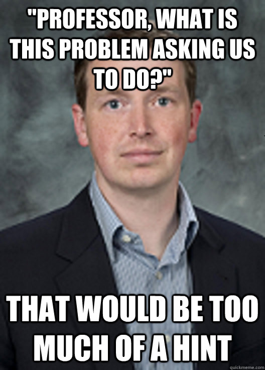 "Professor, what is this problem asking us to do?" That would be too much of a hint