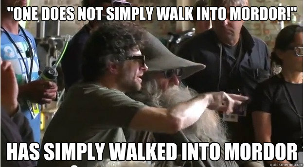 "ONE does not simply walk into mordor!" Has simply walked into mordor