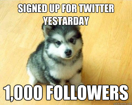 signed up for twitter yestarday 1,000 followers - signed up for twitter yestarday 1,000 followers  Baby Courage Wolf