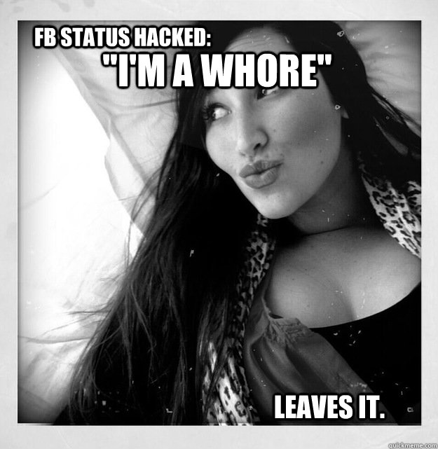 "omgg you changed my status to 'i'm a whore'!! you're such an asshole i hate you!!!!!" leaves it.