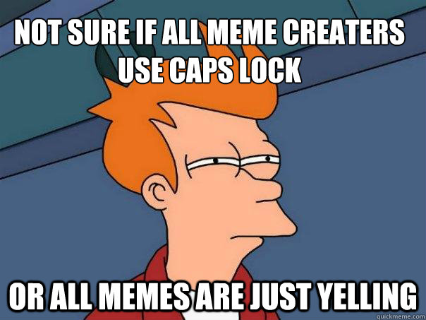 Not sure if all meme creaters use caps lock Or all memes are just yelling - Not sure if all meme creaters use caps lock Or all memes are just yelling  Futurama Fry