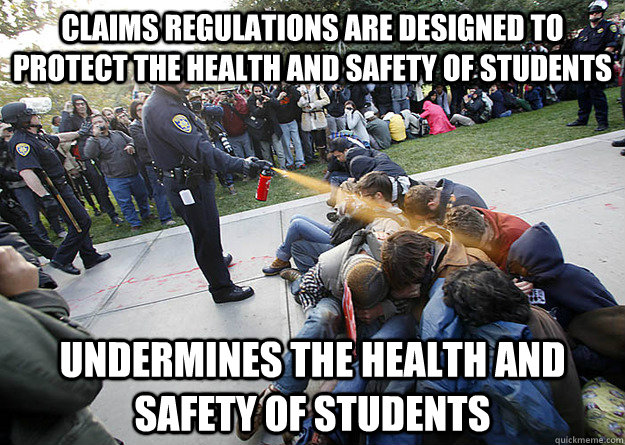 Claims regulations are designed to protect the health and safety of students Undermines the health and safety of students
