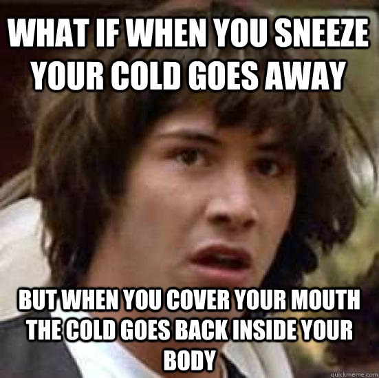 What if when you sneeze your cold goes away but when you cover your mouth the cold goes back inside your body - What if when you sneeze your cold goes away but when you cover your mouth the cold goes back inside your body  conspiracy keanu