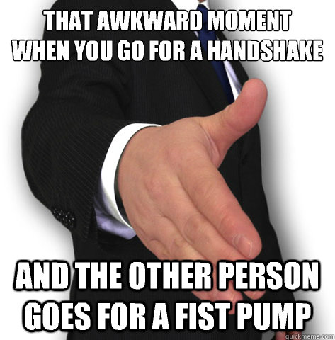 That awkward moment when you go for a handshake and the other person goes for a fist pump