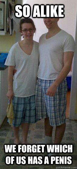 So alike we forget which of us has a penis