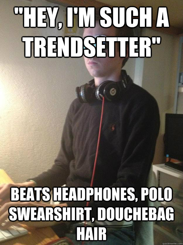 "Hey, i'm such a trendsetter" Beats headphones, Polo swearshirt, douchebag hair