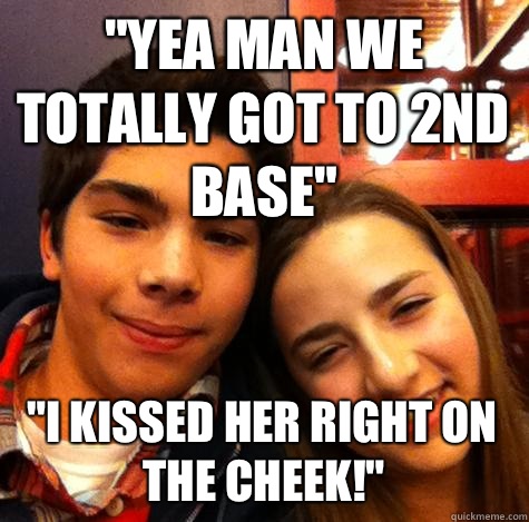 "Yea man we totally got to 2nd base" "I kissed her right on the cheek!"