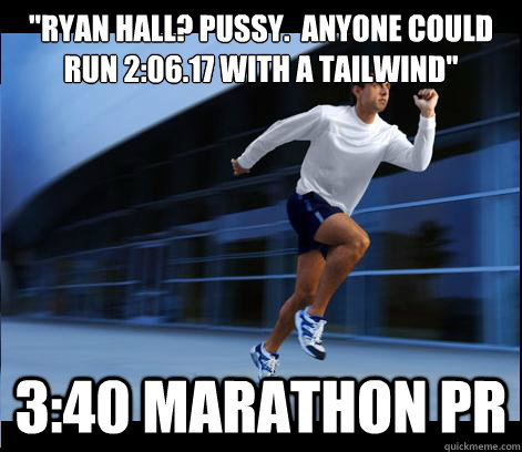 "Ryan Hall? pussy. anyone could run 2:06.17 with a tailwind" 3:30 Marathon PR 3:40 Marathon PR