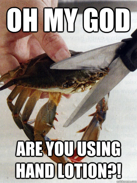 oh my god are you using hand lotion?! - oh my god are you using hand lotion?!  Optimistic Crab