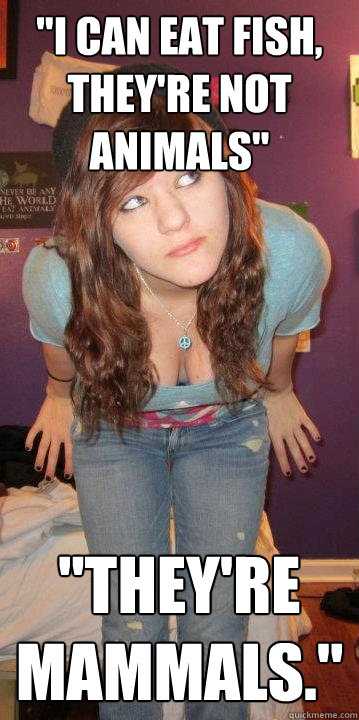"I can eat fish, they're not animals" "They're mammals."