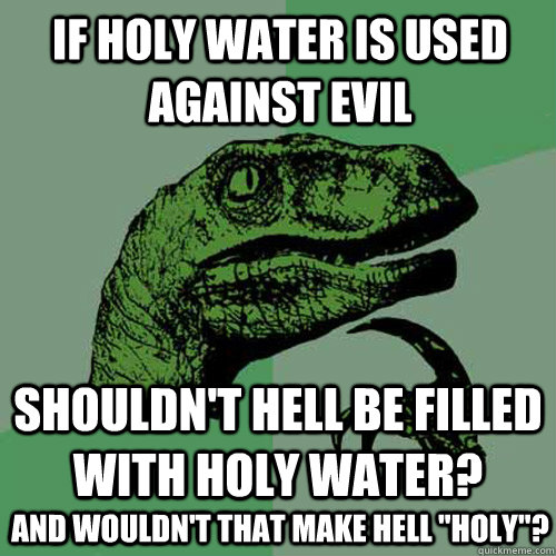 If holy water is used against evil shouldn't hell be filled with holy water? and wouldn't that make hell "holy"?