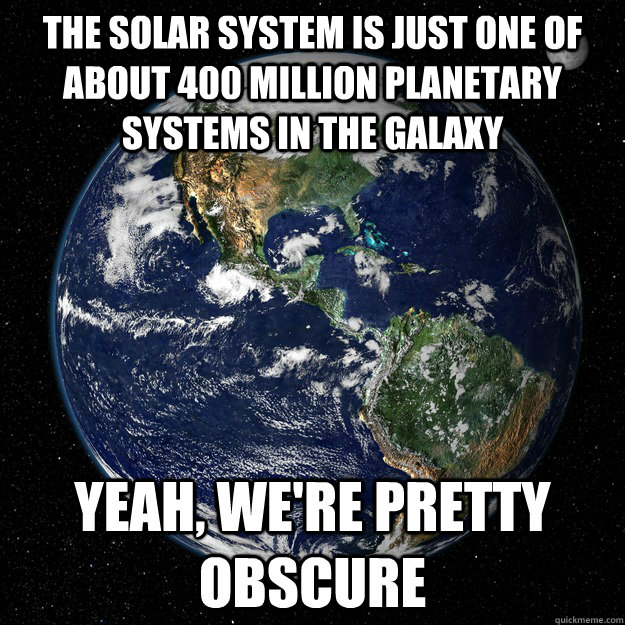 The solar system is just one of about 400 million planetary systems in the galaxy Yeah, we're pretty obscure