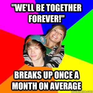 "WE'LL BE TOGETHER FOREVER!" breaks up once a month on average