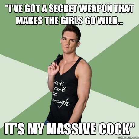 "I've got a secret weapon that makes the girls go wild... it's my massive cock"